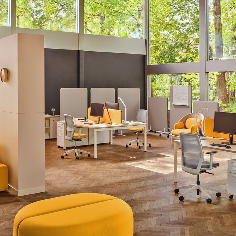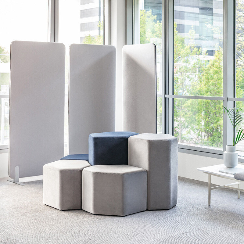 Ovaj elegantni slobodno stojeći panel dizajniran je za poboljšanje akustike u otvorenim uredskim prostorima, bez potrebe za trajnim pregradama.