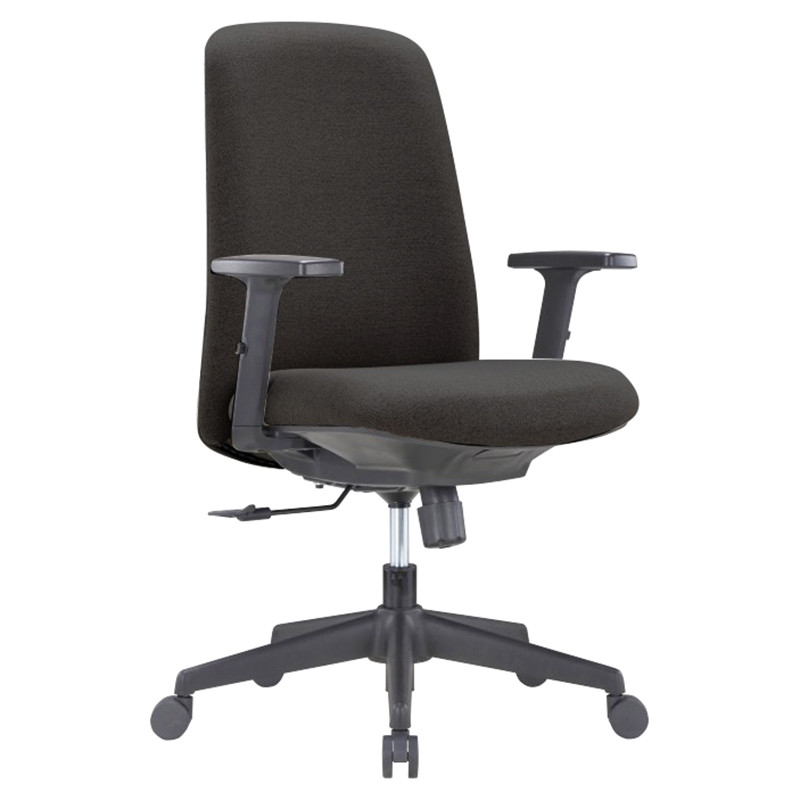Podesivi naslon za leđa po nagibu i 3D rukonasloni omogućuju prilagodbu različitim korisnicima, dok crno tapecirano sjedište i naslon u kombinaciji s PVC bazom pružaju izdržljivost i moderan izgled.